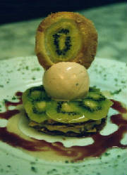 Sprinkle a good amount of confectioners sugar and slightly caramelize under a broiler or salamander. he sugar MUST