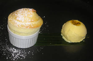 fold meringue into passion fruit pastry cream and pipe into ramequins |